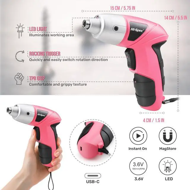 Hi-Spec Electric Precision Screwdriver 3.6V Pink USB Small Power Screwdriver