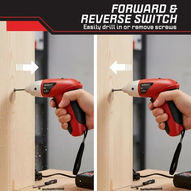 The handy portable 4.8V battery screwdriver is powered by a rechargeable battery, so you don’t have to worry about tangled cords interfering with the job. There is no cumbersome dock required for charging — simply use the included wall port charging cable to recharge this power screwdriver anytime, anywhere.