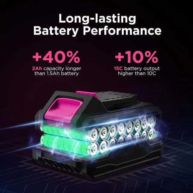 REAL-TIME BATTERY LEVEL - Lithitech Power Drill 20V 2Ah lithium-ion battery pack comes with a real-time battery level display. This feature allows you to easily monitor the remaining battery charge, ensuring you are aware of its power status at all times