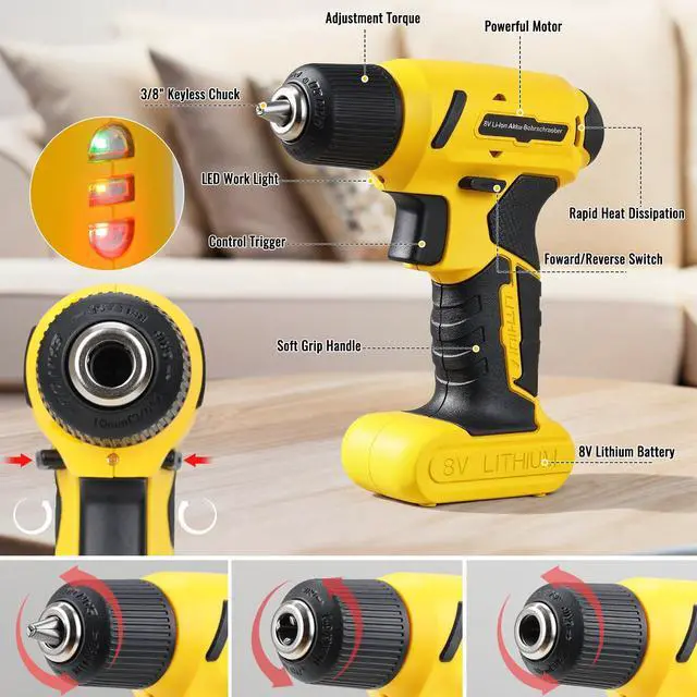 TLGREEN 8V Cordless Drill and Tool Set