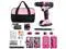 HUAKAYO 220 PCS Pink Tool Kit: A stylish and practical toolkit designed for women. Includes a lightweight pink cordless drill, screwdriver set, screw anchor set, socket kit, and magnetic wristbandall neatly stored in a chic pink carry bag. Perfect for home repairs, DIY crafts, and as a thoughtful gift for moms, wives, or first-time homeowners.