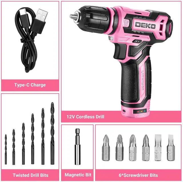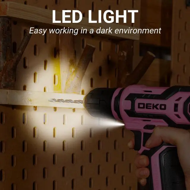 The cordless drill is equipped with a user-friendly switch that easily switches between forward and reverse rotation by simply moving the lever to the left or right.