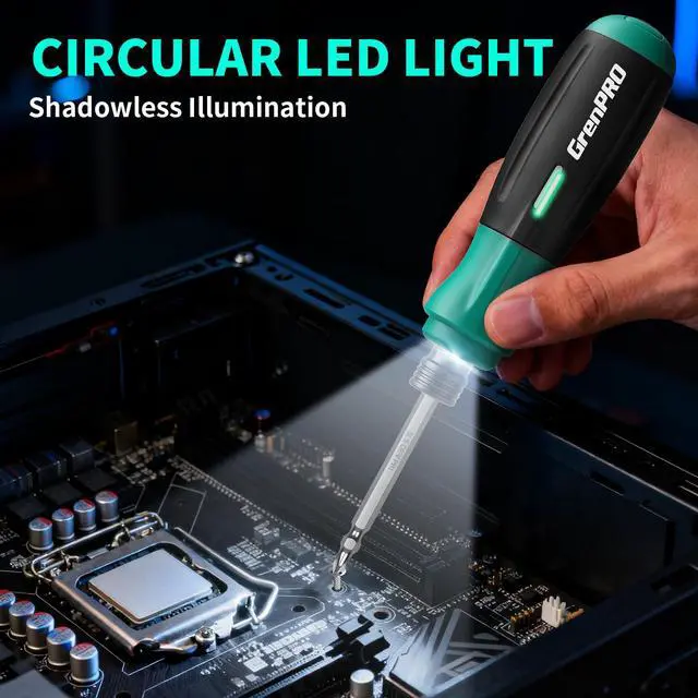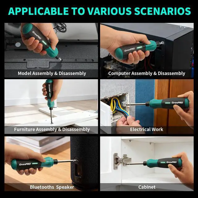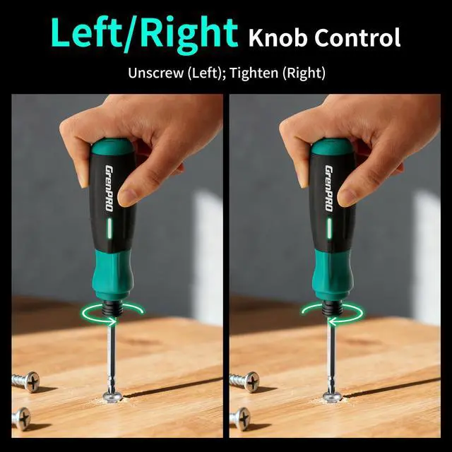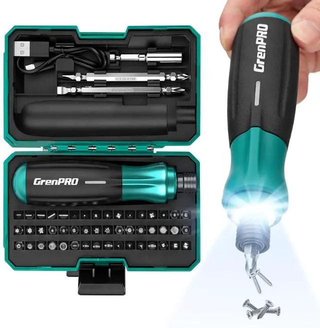 Meet your new daily essential: the 4V Cordless Rechargeable Electric Screwdriverdesigned to make small projects easier, faster, and more convenient. No more tangled cords or manual screwdriver fatigue: this cordless electric screwdriver delivers just the right power (adjustable torque) for tasks like assembling bookshelves, fixing loose cabinet hinges, repairing toys, or installing light fixtures. The 51-bit set covers every common screw type, while the included carrying case keeps all parts organizedgrab it and go for on-the-spot repairs. The 850mAh rechargeable battery ensures long-lasting use, and USB charging lets you top it up anywhere (laptop, power bank, even car chargers). When working in dark spaces (like under the sink or in closets), the built-in LED light brightens your work area for mistake-free screwing. Its compact, ergonomic design fits comfortably in your hand, and the clear left/right turn control means youll never mix up ""loosen"" and ""tighten"" again. Whether youre a DIY enthusiast, a busy homeowner, or someone who hates fumbling with multiple tools, this power screwdriver checks all boxes: versatile, portable, and reliable. Plus, its vibrant green color adds a fun touch to your toolbox!