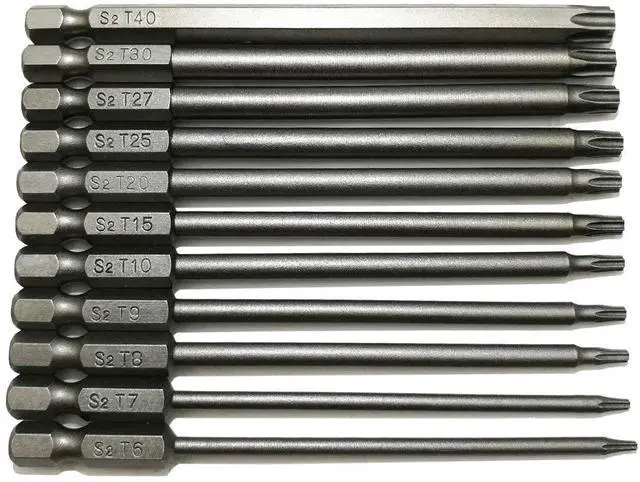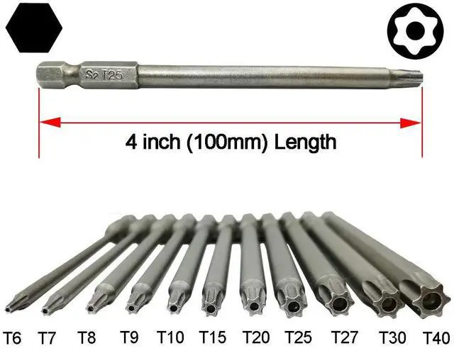 - Multi size, T6, T7, T8, T9, T10, T15, T20, T25, T27, T30, T40 Torx Security Screwdriver Bits. Size is clearly engraved on the shank for easy identification.