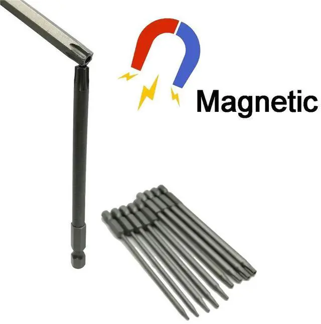 - Magnetizable torx security head(New Bits with weak Magnetic). After Magnetized with a magnet, can suck the screws easily when used it.