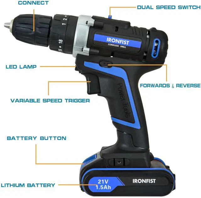 IRONFIST cordless drill with 3 working type. Hammering type with impact, work for concrete, brick, wall and head material; Drilling type work for wood, plastic and soft material; Screwdriving type work for screw with 1-18 torque setting, it quick change suitable for any work.