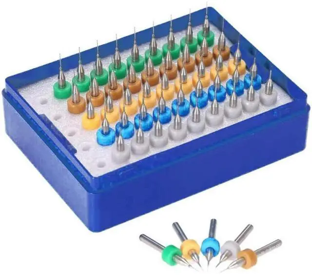 50pcs 0.5+0.6+0.7+0.8+0.9mm Tungsten Carbide Micro Drill Bits Set Engraving Tools Compatible with PCB Circuit Board Stone Dremel Jewelry CNC Engraving