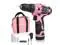 _Mega Brand Pink Cordless Drill Driver Set, 12V Electric Screwdriver Driver Tool Kit for Women, 3/8" Keyless Chuck, Charger and Storage Bag Included - Pink Ribbon