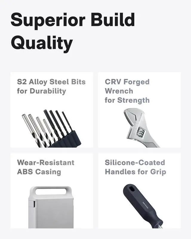PORTABLE & OUTSTANDING APPEARANCE: The portable case is organized according to manual and electrical functions, in a compact structure best for storing. Fully equipped with all one needs in one toolkit. Carefully thought details enrich dynamic visual perception. Hidden side buckles, for a smooth and neat buckle opening experience. Finely textured ABS, tough and resistant to wear