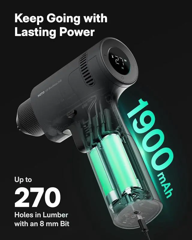 OWERFUL BRUSHLESS MOTOR: 16V cordless drill delivers 50 N·m (442 in-lbs) torque with dual high speeds of 400/1700 RPM for efficient drilling and driving
