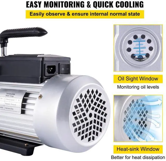 Vacuum Pump 12CFM 1 HP Single Stage Air Conditioning Vacuum Pump 110V 5PA Ultimate Vacuum Refrigerant HVAC Air Tool Rotary Vane Vacuum Pump for Automobile Vacuum Evacuation (1-Stage, 12CFM)