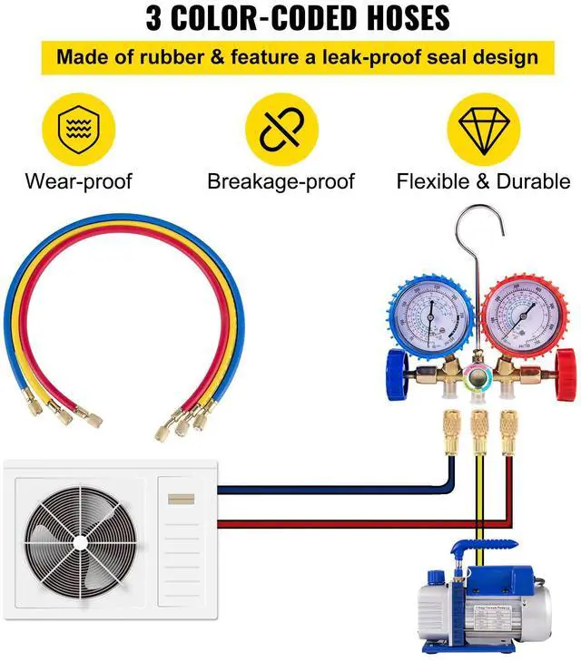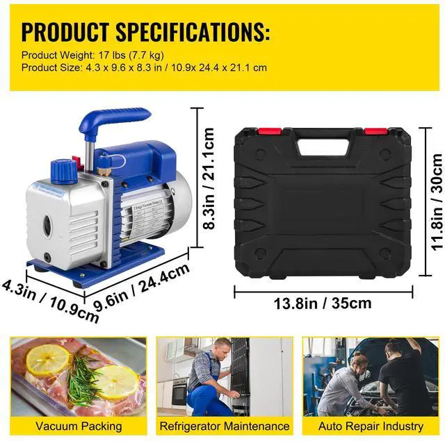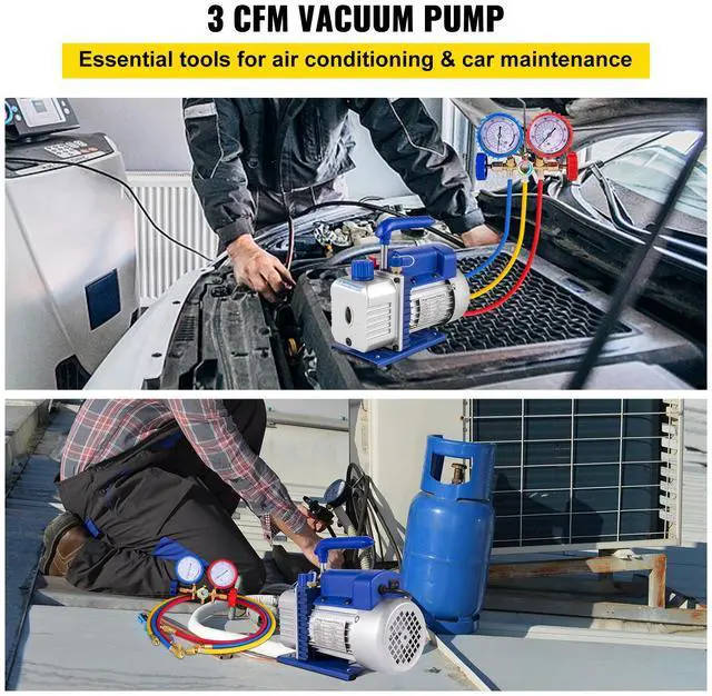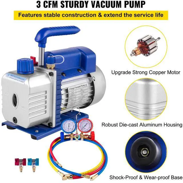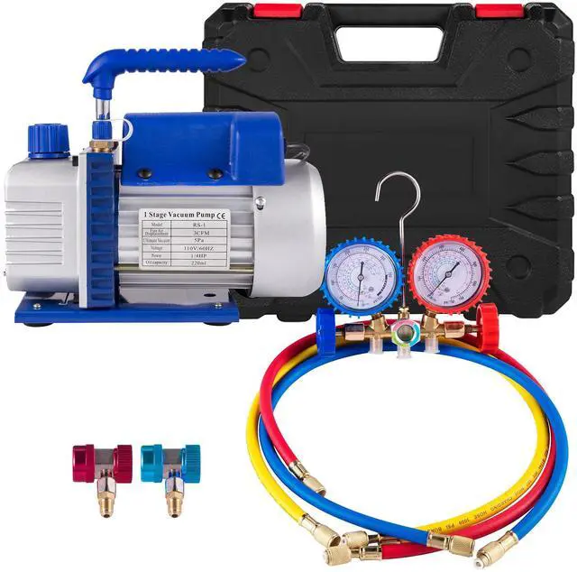 1 x 3CFM 1-Stage Refrigerant Vacuum Pump Refrigeration Gauges