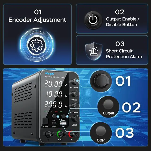 Low noise: This bench power supply adopts safe and reliable electronic components and a new circuit design, which will make the noise and ripple of the power supply very low.