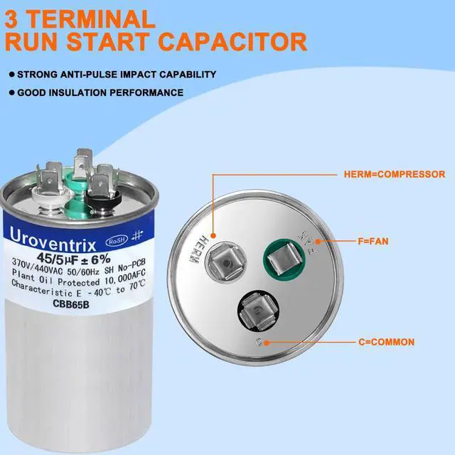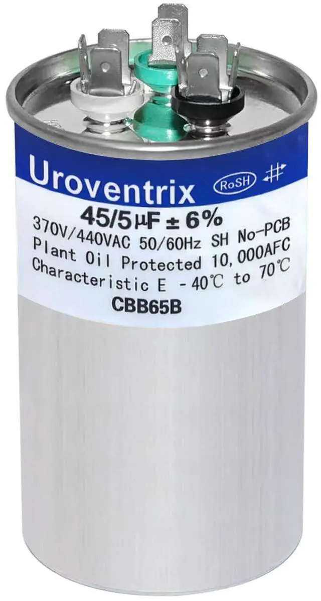 The CBB65 Dual Run Start Capacitor delivers high starting torque and stable current for AC motor systems. Engineered with metallized polypropylene film and vacuum-sealed castor oil, its ideal for air conditioner compressors, condenser fans, heat pumps, and commercial refrigeration motors.