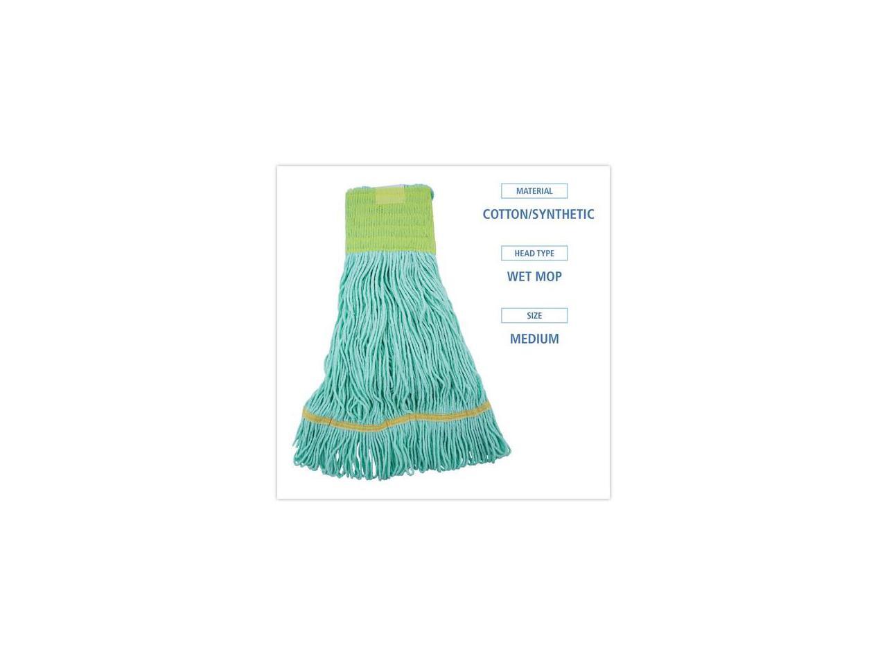 EcoMop Looped-End Mop Head, Recycled Fibers, Medium Size, Green 1200MEA