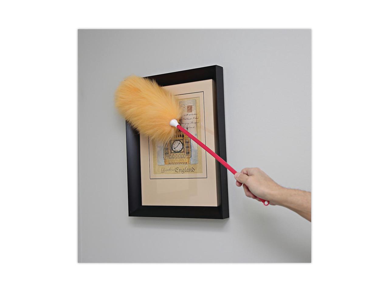 Genuine lambswool duster quickly lifts dust particles and retains them until shaken.