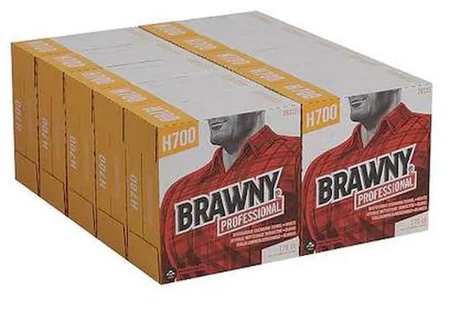 The Brawny® Professional H700 heavy weight, strong shop towel is made from hydro entangled fibers (HEF) making them super soft, yet durable enough to resist tears. These wipers are compatible with most commonly used industrial solvents and stand up well in many general manufacturing and maintenance applications including vehicle maintenance. These low lint wipers provide a cloth-like feel engineered to deliver consistent performance and fast and effective wiping, making them a terrific replacement for more expensive cloth shop towels and rags. These wipers come in a convenient dispenser box for added protection and quick and easy dispensing.