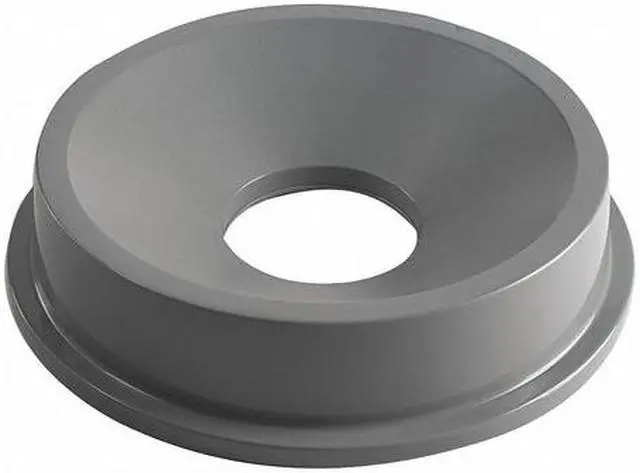 Trash Can Top, Funnel, 32 gal, Round, Snap On, Number of Openings 1, Gray, BRUTE (R) Series, Height 5 in, Width/Diameter 22 1/4 in, Plastic, Plastic, 35ZU66 For Use With Trash Can Grainger Item Number, FG263200GRAY For Use With Trash Can Mfr. Model Number, NSF/ANSI. This item has been restricted from sale in the following state (s): []