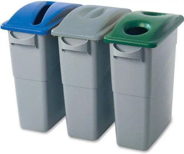 Bottle and Can Recycling Top, Dome, 23 gal, Rectangular, Snap On, Number of Openings 2, Blue, Slim Jim (R) Series, Height 2 3/4 in, Width/Diameter 11 1/2 in, Depth 20 1/2 in, Plastic, Plastic, FG354007BLUE, FG354007GRN, FG354060BLA, FG354060GRAY For Use With. This item has been restricted from sale in the following state (s): []