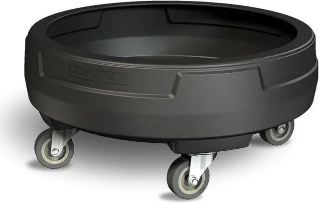 Container Dolly, 55 gal, Round, 250 lb, Max. No. of Containers 1, Width/Diameter 25 in, Depth Not Applicable, Height 12 in, Polyethylene, Black, Caster Size 3 in. This item has been restricted from sale in the following state (s): []