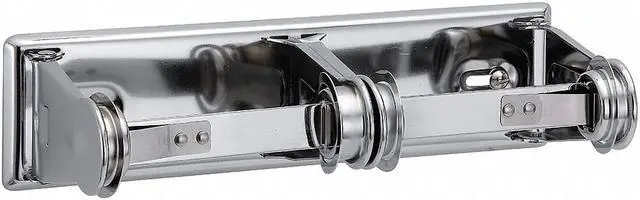 Toilet Paper Holder, Toilet Paper Type Standard Core, No Series, Dispenser Capacity (2) Rolls, Stainless Steel, Finish Polished, Silver, Horizontal Double Roll, Holder Style Triple Post, Universal, Ligature Resistant No, ADA Compliance No, Height 2 3/4 in, Width 11 1/8 in, Depth 4 1/4 in, Mounting Type Wall, Toilet Paper Holder. This item has been restricted from sale in the following state (s): []