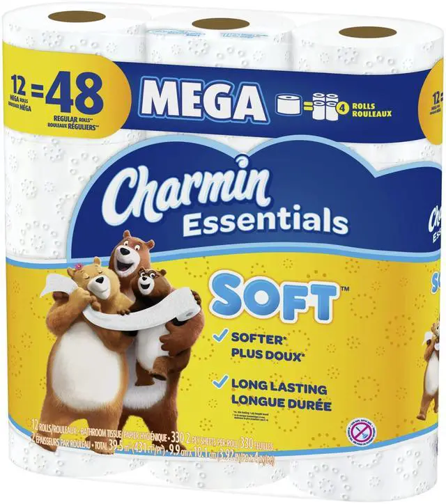 Charmin Essentials 2-Ply Soft Mega Toilet Paper Rolls 12RL,WH,4/12RL,WH