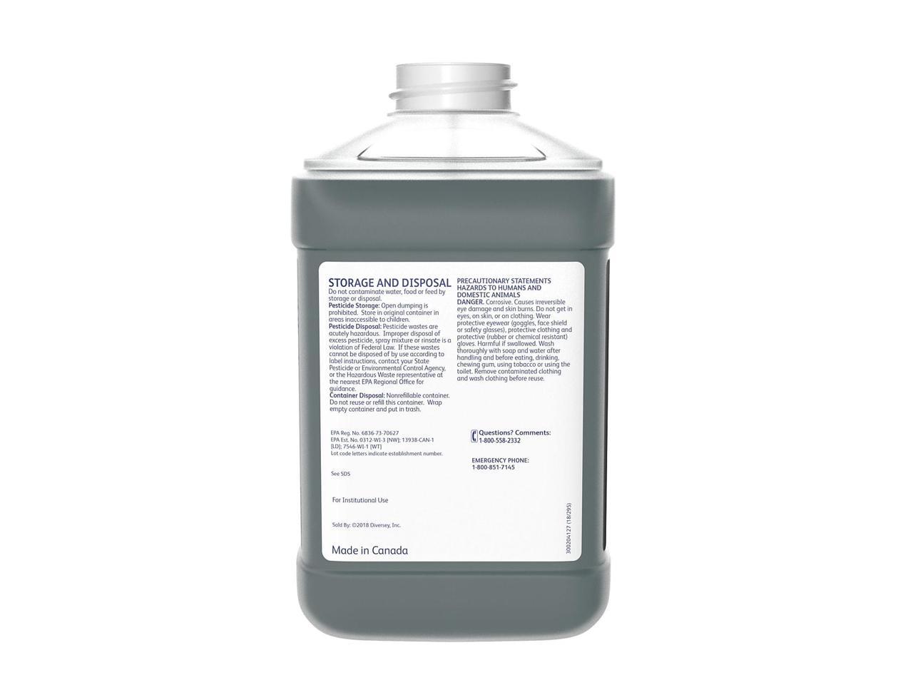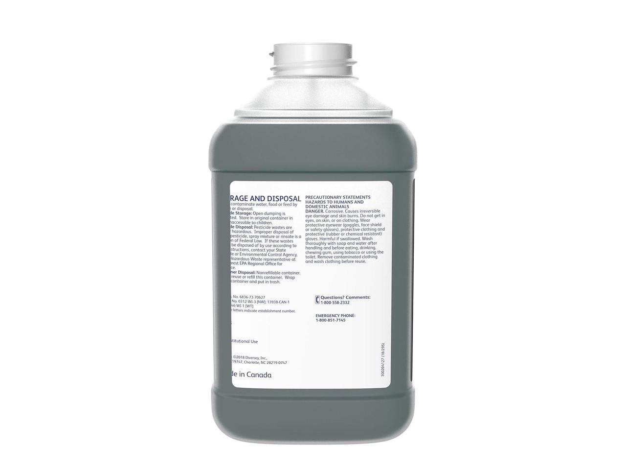- Non-acid, multi-surface restroom disinfectant cleaner concentrate. Comes in blue and features floral scent. Concentrated formula dilutes at 1 oz. per gallon delivering cleaning performance for just pennies per diluted gallon. To order secondary labels for blank bottles, contact Diversey Customer Service option 3.