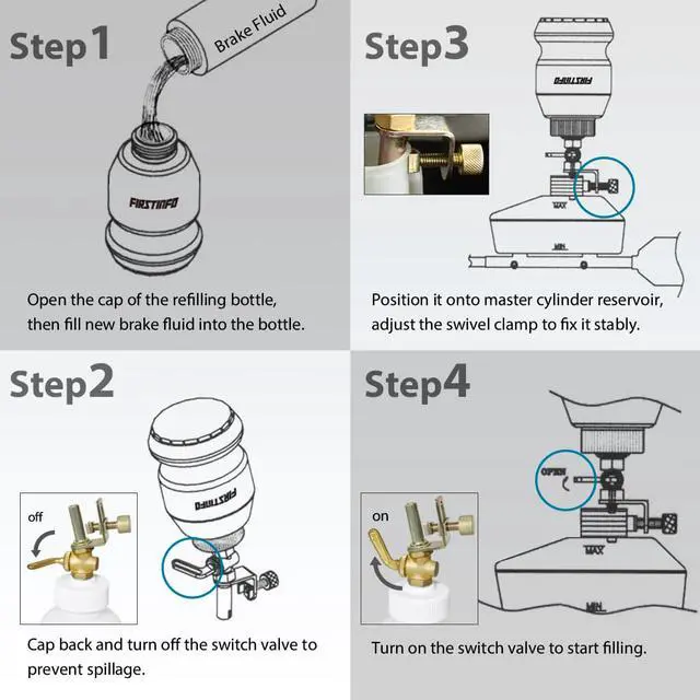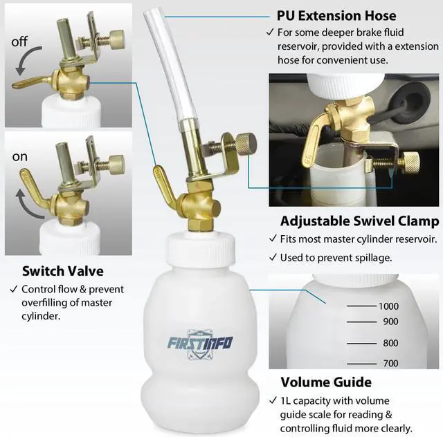 2. Used for brake fluid dispensing or refilling; ideal for heavy-duty motorcycle, automotive.
