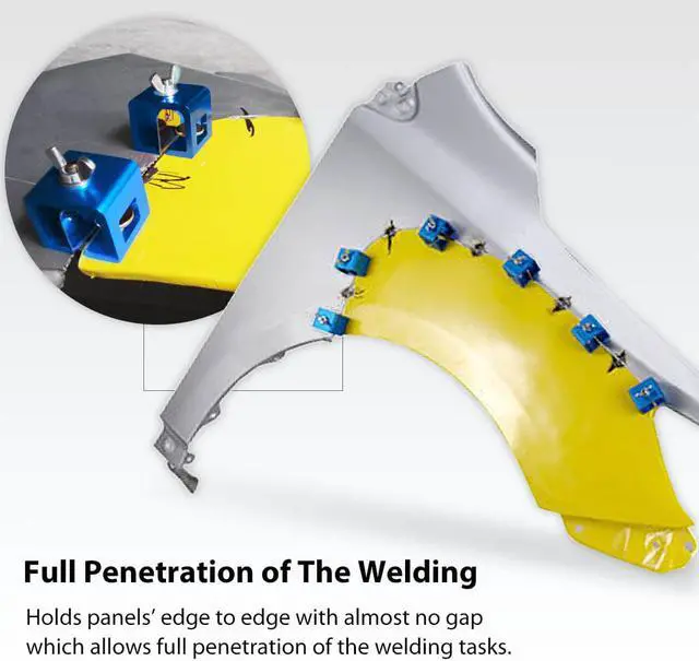 2. Holds panels' edge to edge with almost no gap which allows full penetration of the weld.