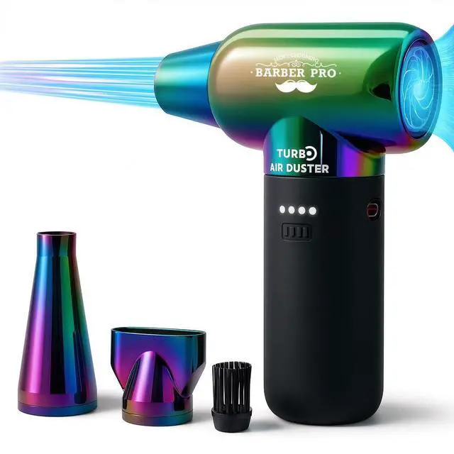 Our New Compressed Air Duster - Electric Duster for Hair Barber-Energy-Efficient-Alternative to canned air CompressedAir: cordless air dusters electric 2500mAh.