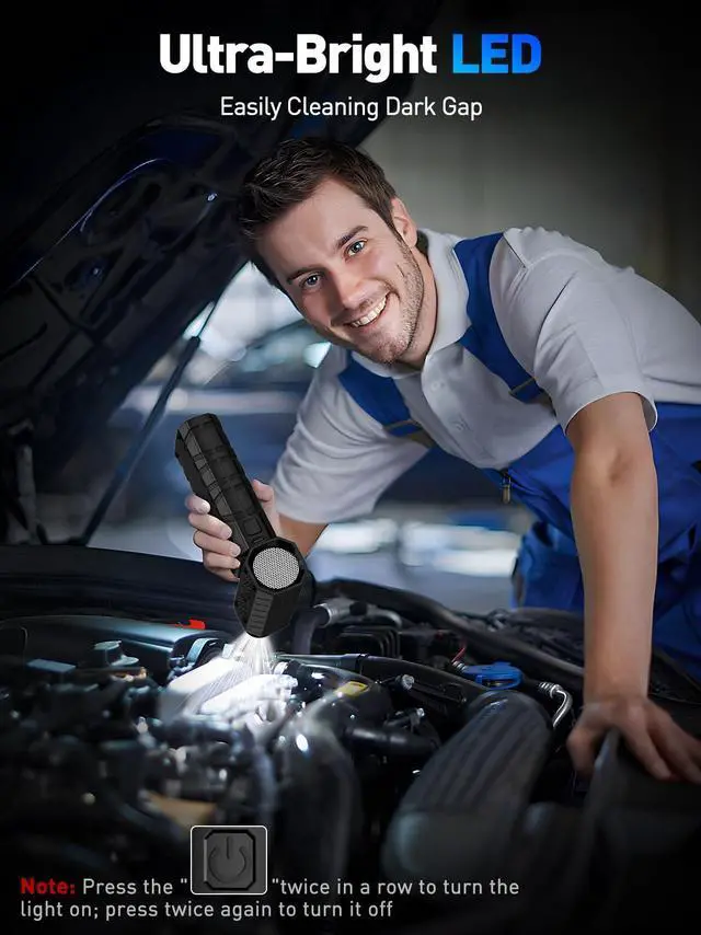 • MULTI-FUNCTIONAL CLEANING TOOL: The air duster features an LED light and includes 1 nozzle and 4 brushes. The keyboard cleaner is ideal for cleaning keyboards, computer towers, air conditioning vents, car window blades, rearview mirrors, car seats, and sofa crumbs, it also dries pet hair, supports barbecue and camping tasks, inflates items, blows snow, and serves as a portable fan or mini leaf blower, making it a versatile tool for many scenarios