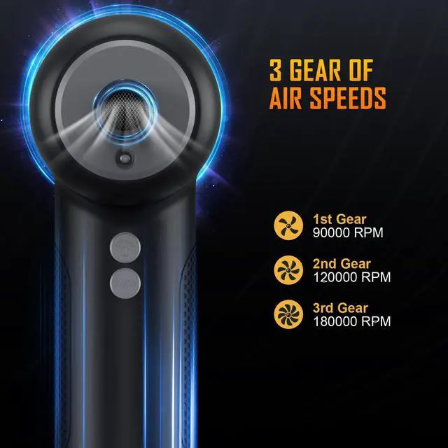 180000RPM Air DusterThe Wireless electric air duster max rotating speed is 180000RPM, which can continuously produce high-pressure air to eliminate dust, Clear the dirt hidden in various gaps on the keyboard or any electronic devices, extremely convenient to use in the home, office or car duster.
