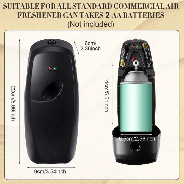 Size and Easy to Refill: the wall mounted air freshener is compatible with a commercial air freshener can standard size approximately 5.51"x 2.56"; This convenient size allows for a smooth and hassle-free refill process, air freshener cans not included