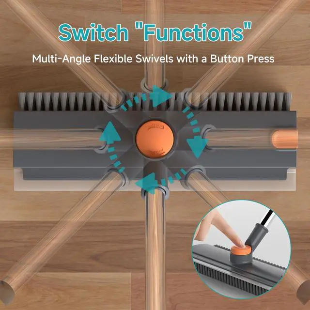 No need to bend, lift the scrub broom head, press and hold the button, and rotate it freely. Every 90° rotation will engage a corresponding angle lock, allowing for quick switching between different functional cleaning modes.