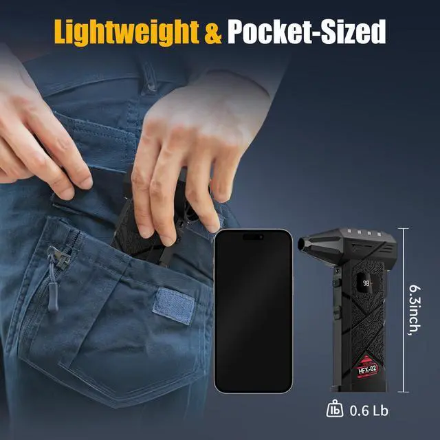 Ultra-Portable & Pocket-Sized: Only 0.6 lbs, about the size of a smartphone easy to carry, store, and use anywhere. Perfect for PC cleaning, home, car, outdoor, office, and travel needs.
