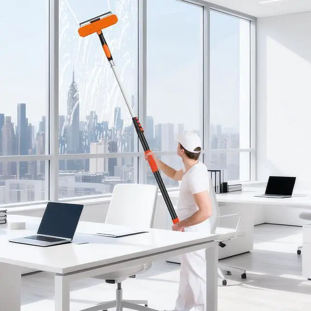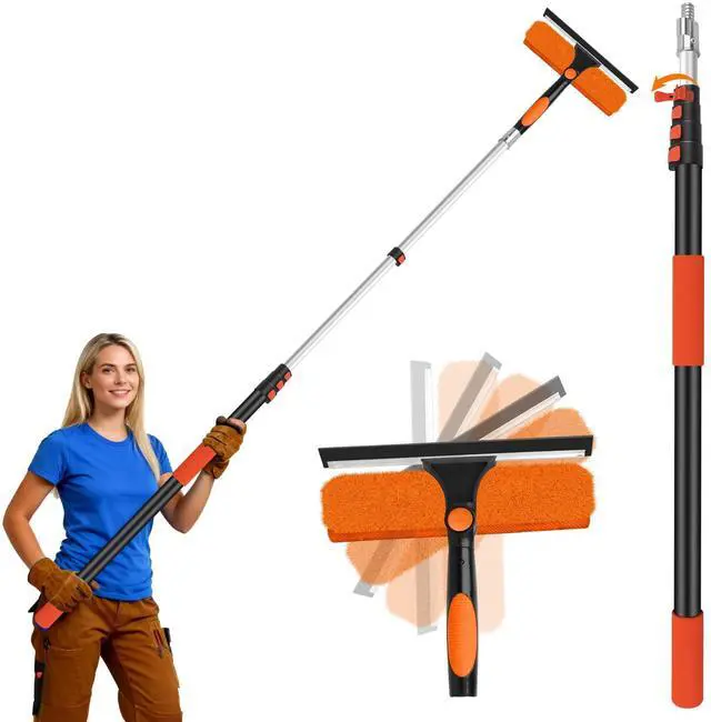 26FT Telescoping Window Squeegee Kit | 2-in-1 Professional Window Washer & Microfiber Scrubber with Extension Pole | High Reach Cleaning Tool for Outdoor, Indoor Windows & Glass