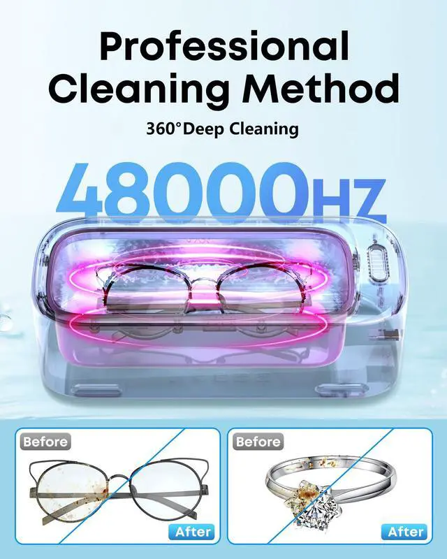 Warning: Ensure the power supply matches the ultrasonic cleaner (Only compatible with 12V/2A) to avoid overload. Please read the manual before use, place items correctly, and select the proper cleaning time and mode for effective results.