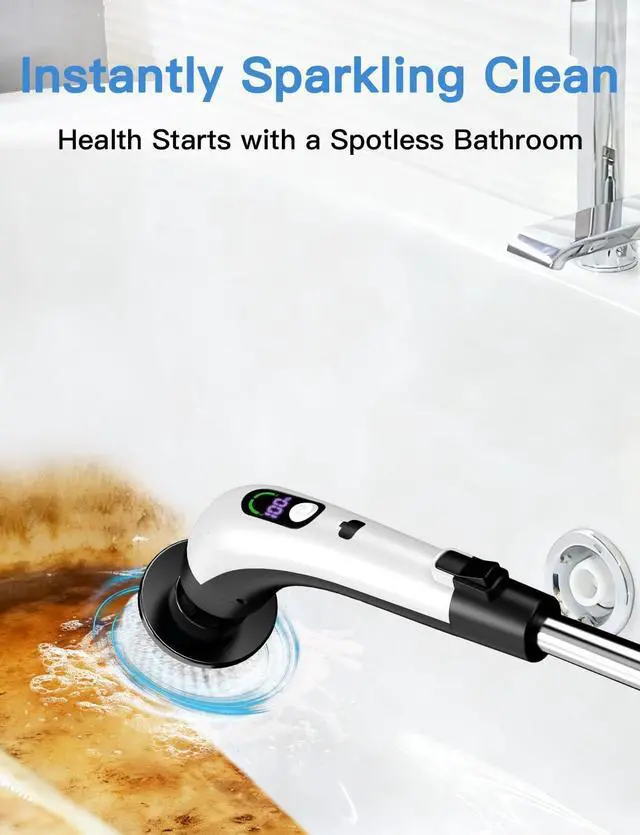 Electric Shower Scrubber Rechargeable Cleaning Brush Dual Speed Electric Scrubber IPX7 Waterproof Scrubber Extendable Handle Power Scrubber Replaceable Brush Heads Scrubber 400 RPM Electric Spin Scrubber Tub and Tile Electric Scrubber Bathroom Tile Grout Cleaning Brush Kitchen Grease Electric Scrubber Car Detailing Electric Scrubber Lightweight Portable Electric Scrubber