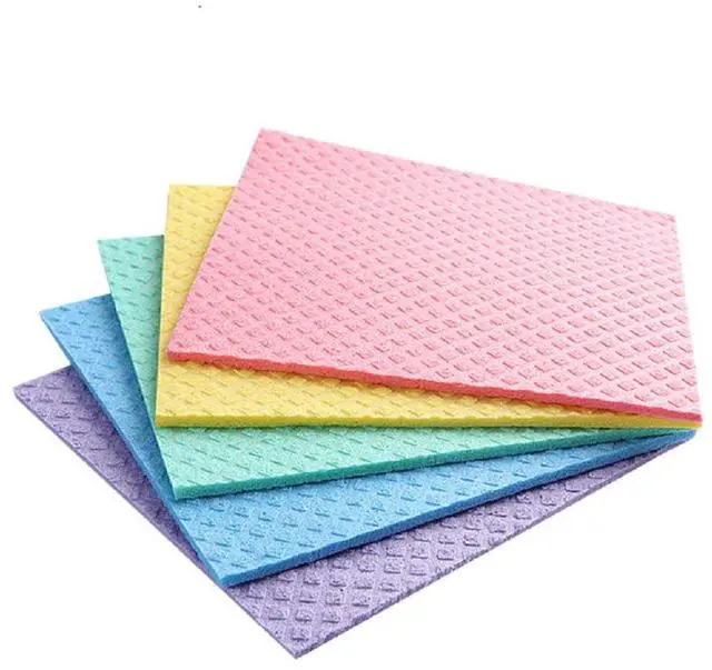 Cleaning sponge cloths consist of absorbent and tear-resistant 100% cellulose-cotton blend. Tear and abrasion resistant with special suction power. The sponge cloths are washable at 60 °C ( 140 °F). Note: Sponges is manufactured in moisture and vacuum packing condition. Buyer soak sponge in water to let it expand to normal shape.
