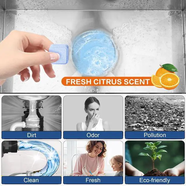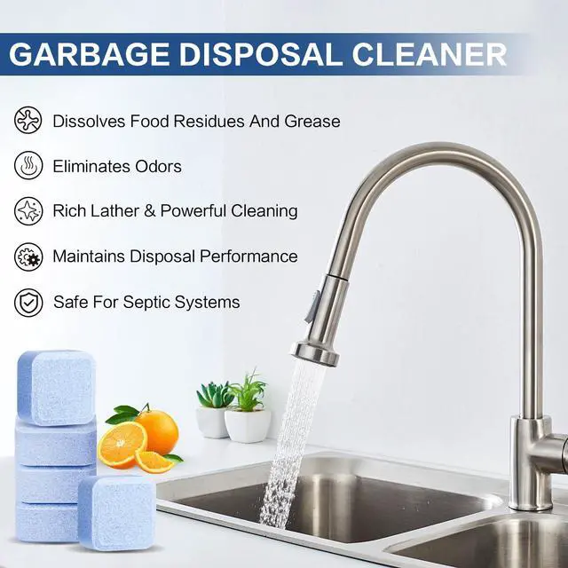 Removes Food Residue & GreaseOur powerful garbage disposal cleaner tablets feature an advanced formula that effectively dissolves stubborn food residue and grease buildup. Thoroughly removes debris to maintain optimal cleanliness in your disposal unit.Use 2 tablets monthly (3+ for tough buildup).