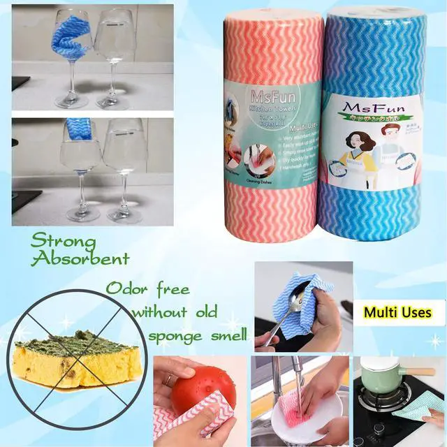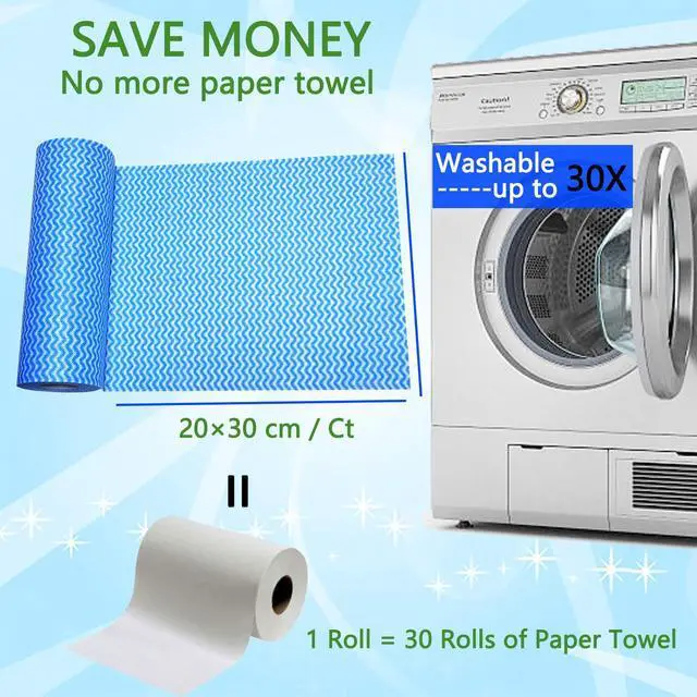 Reusable Cloth Paper Towels 60 Ct, Disposable Kitchen Cleaning Dish Towels, Multi-Purpose Wipes on Roll, Sustainable