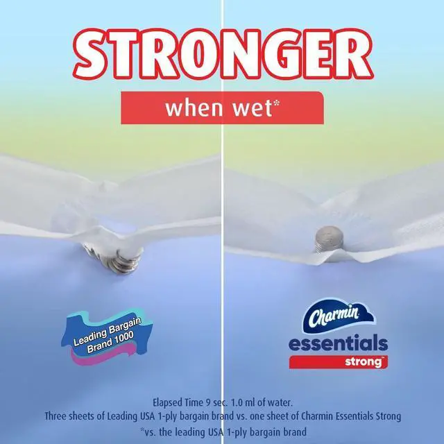 Charmin's strongest 1-ply toilet paper is 3X stronger when wet vs. the leading USA 1-ply bargain brand.
