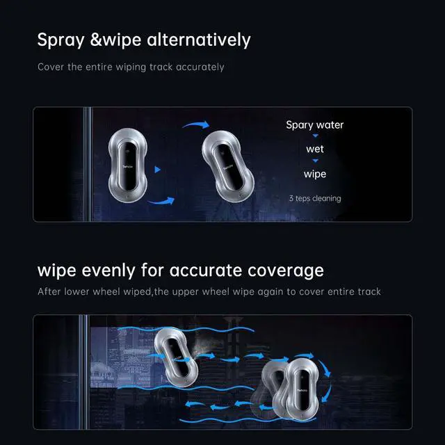 Cordless Electric Portable Fully Automatic Window Cleaning Robot 3+ Modes Long-Lasting Battery Brushless Motor Gyroscope