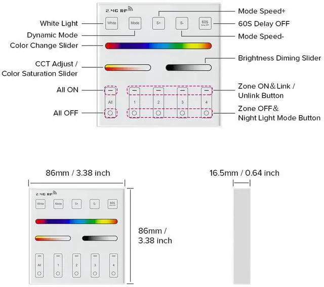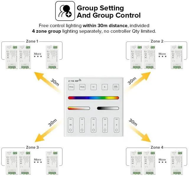 - Product Name: 4 Zone RGB , RGBW and RGBCCT Panel Remote Controller.