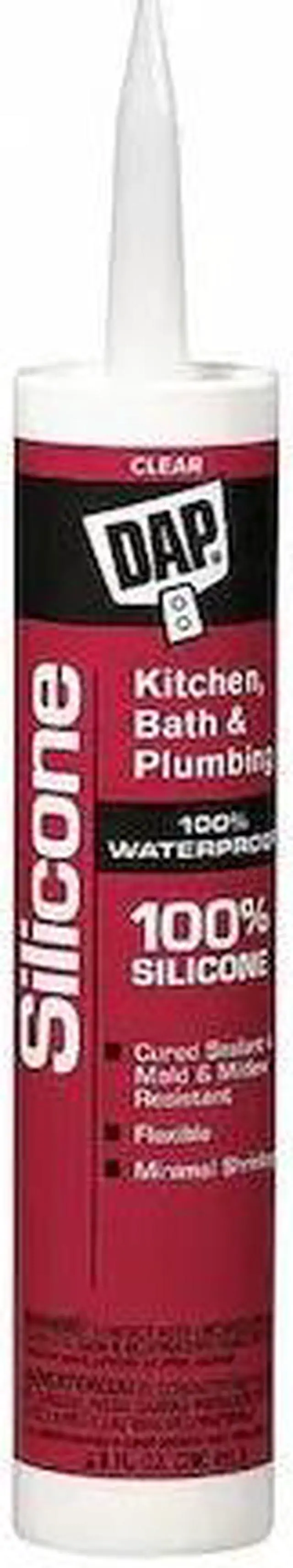 Silicone Sealant, Color Clear, Application Kitchen and Bath, Container Size 10 oz, Container Type Cartridge, Resistance Properties Mildew Resistant, Mold Resistant, Waterproof, Sealant Properties Flexible, Standards FDA 21 CFR 177.2600, Elongation Not Applicable, Full Cure Time 1 day, Maximum Performance Temperature 350 Degrees F, Minimum Performance Temperature -40 Degrees F, Working Time 5 min