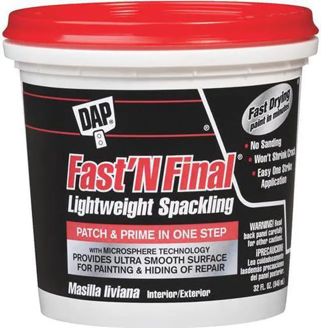 California Proposition 65: This product contains a chemical known to the State of California to cause birth defects or other reproductive harm. Spackle, Product Form Paste, Color White, Container Size 32 oz, Container Type Pail, Coverage Not Applicable, Cure Type Not Applicable, Finishing Features Paintable, Sandable, Full Cure Time 1 day, Overall Length Not Applicable, Overall Width Not Applicable, Working Time 5 min, Application Ceiling and Wall Repair, Standards SARA Title III, VOC Content 6 g/L, Flash Point 212 Degrees F, Maximum Performance Temperature 150 Degrees F, Minimum Application Temperature 40 Degrees F. This item has been restricted from sale in the following state (s): []