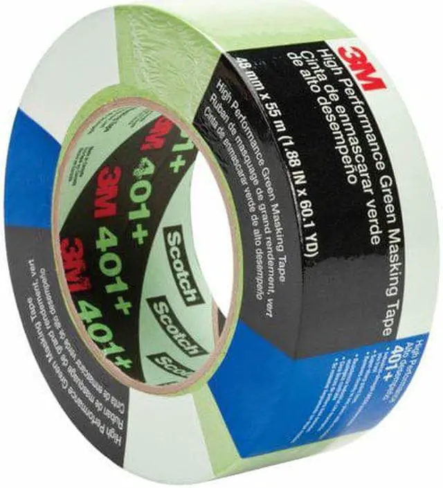 Masking Tape, Tape Backing Material Paper, Tape Adhesive Rubber, Tape Thickness 7.30 mil, Tape Width 48mm, Tape Length 55m, Tape Shape Continuous Roll, Tape Color Green, Clean Removal Time Not Rated, Min. Tape Performance Temp. 70 Degrees F, Max. Tape Performance Temp. 250 Degrees F, Tape Tensile Strength 26 lb. /in., Tape Adhesive Strength 36 oz. /in., Tape Elongation 10 Percent, Series 401+, Standards ASTM D-3330, D-3759, D-3652, D-6123. This item has been restricted from sale in the following state (s): []