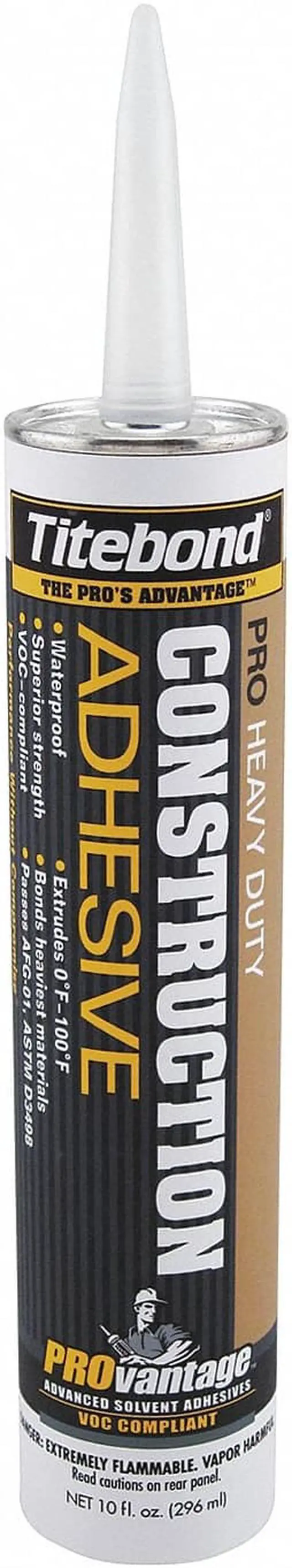 California Proposition 65: This product contains a chemical known to the State of California to cause cancer. Construction Adhesive, Adhesive Color Brown, Application Method Dispensing Gun, Chemical Base Thixotropic Masitc, Container Size 10 fl oz, Container Type Cartridge, Features Bridges Gaps, Eliminates Squeaks, Reduces Nailing, Strong Fast Grab, Gap Fill 0.0625 in, Interior/Exterior Interior/Exterior, Working Time 15 min, VOC Content Weight Percentage 3.91 Percent, Water Resistance Waterproof, VOC Content Weight Less Than 50 g/L, Standards ASTM C557, ASTM D3498, APA AFG-01, VOC Compliant. This item has been restricted from sale in the following state (s): []