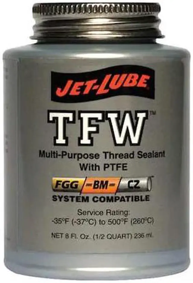 Pipe Thread Sealant, Cure Type Non-Hardening, Series TFW, Container Size 8 fl oz, Container Type Brush-Top Can, Maximum Operating Temperature 500 Degrees F, Minimum Operating Temperature -35 Degrees F, Maximum Operating Pressure for Gases 2, 000 psi, Maximum Operating Pressure for Liquids 10, 000 psi, Color White, For Fluid Type Gases, Potable Water, For Material Type ABS, CPVC, PVC. This item has been restricted from sale in the following state (s): []