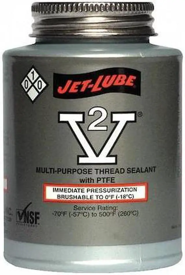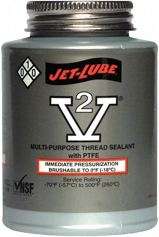 Pipe Thread Sealant, Cure Type Non-Hardening, Series V-2, Container Size 8 fl oz, Container Type Brush-Top Can, Maximum Operating Temperature 500 Degrees F, Minimum Operating Temperature -70 Degrees F, Maximum Operating Pressure for Gases 2, 000 psi, Maximum Operating Pressure for Liquids 10, 000 psi, Color Off-White, For Fluid Type Gases, Potable Water, For Material Type Aluminum, Brass, Copper, Iron, Polyethylene, PVC, Fiberglass, Stainless Steel. This item has been restricted from sale in the following state (s): []